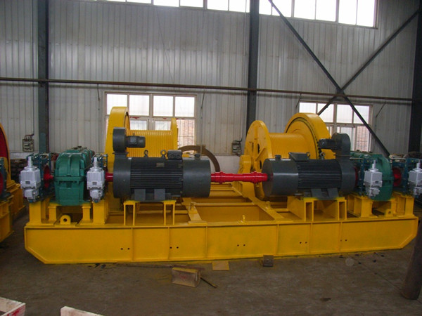 公司主要產品有自行設計制造的各種規格及用途的卷揚機系列和施工升降機系列,我公司生產的卷揚機主要有主鉤卷揚機,該機為雙動力驅動,卷筒采用我公司自主設計的折線繩槽,避免了鋼絲繩亂繩現象。雙聯卷筒卷揚機,主要用于公路、橋梁、礦山等大型起吊用卷揚機。起重帶排繩器卷揚機、液壓卷揚機使用在高速鐵路。我公司生產的大噸位摩擦卷筒卷揚機用于滬蓉高速公路纜索吊起重,以及巨型貨輪的牽引。我公司長期合作伙伴有武橋重工、二航局、大橋局等。其中滬通大橋項目橋面吊采用的是我企業生產的卷揚機,作為起重設備取得了良好的施工效果。